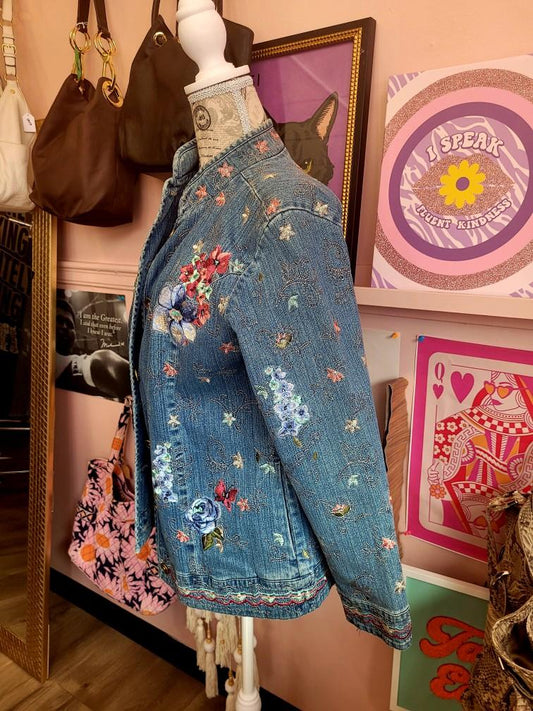 Jean Jacket with Unique Embroidery - Size XS